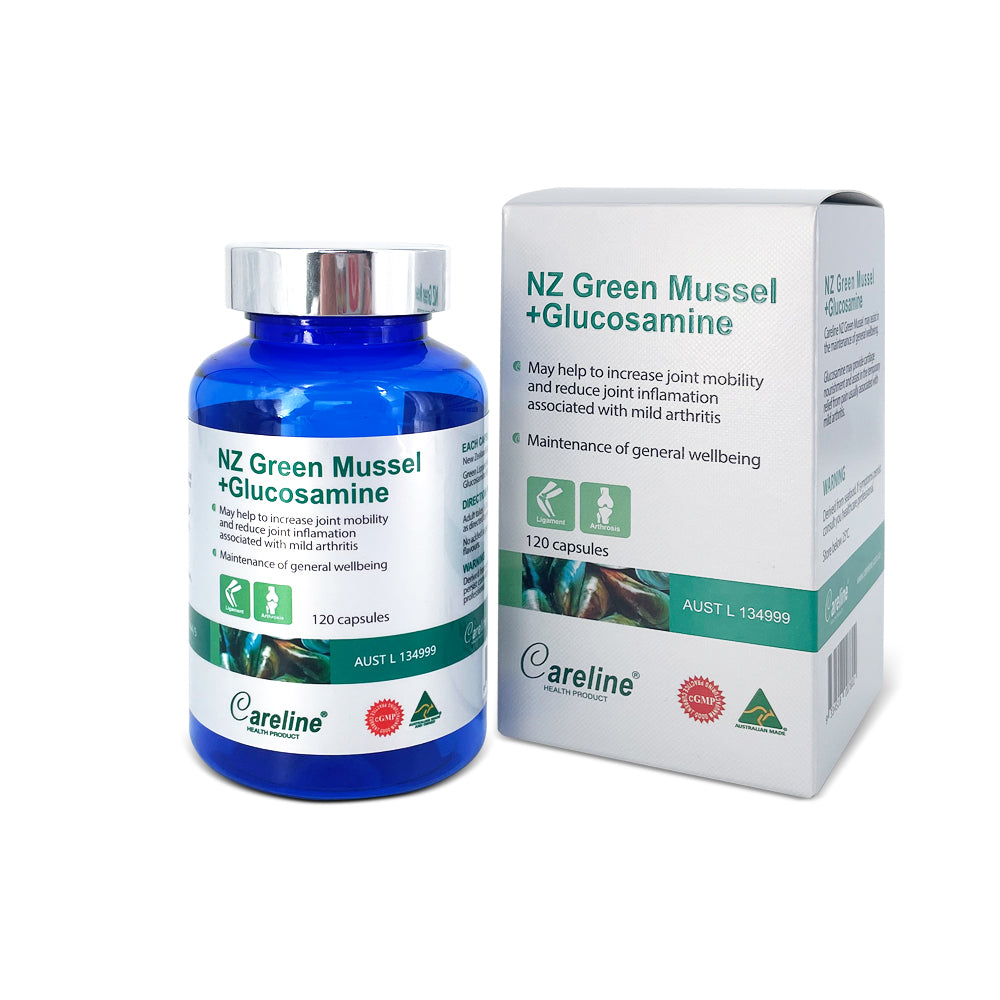 Careline Blue Summit NZ Green Mussel and Glucosamine assists in the maintenance of general wellbeing and reduction of mild arthritis and joint pain symptoms. It helps to increase joint mobility, support cartilage growth and reduce joint inflammation. Glucosamine helps provide cartilage nourishment and assists in the temporary relief of pain associated with mild arthritis. No added sugar, starch, gluten, yeast or artificial flavors.